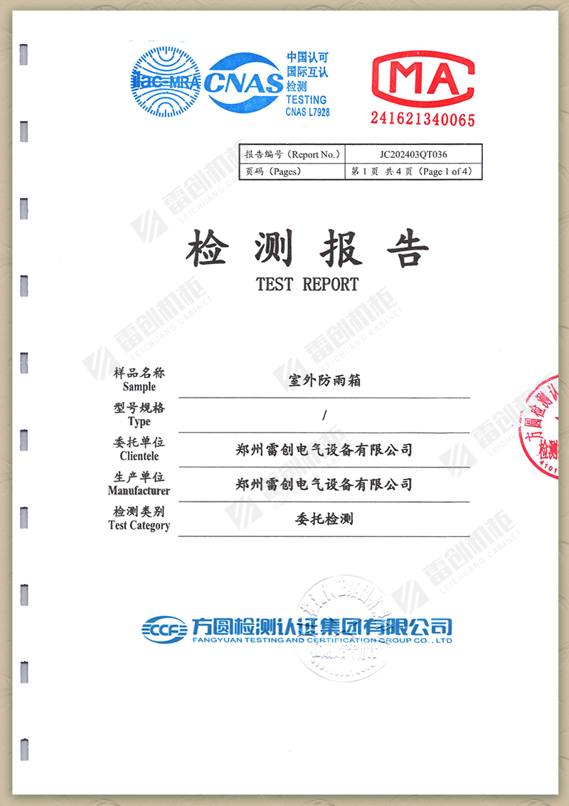 雷創電氣:室外防雨箱外殼防護等級(IP65)檢測報告